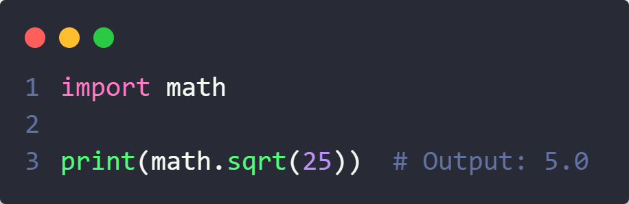 Hereโs a simple example of importing Pythonโs built-in math module: