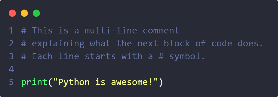 3. Multi-Line Comments (Using Multiple #)